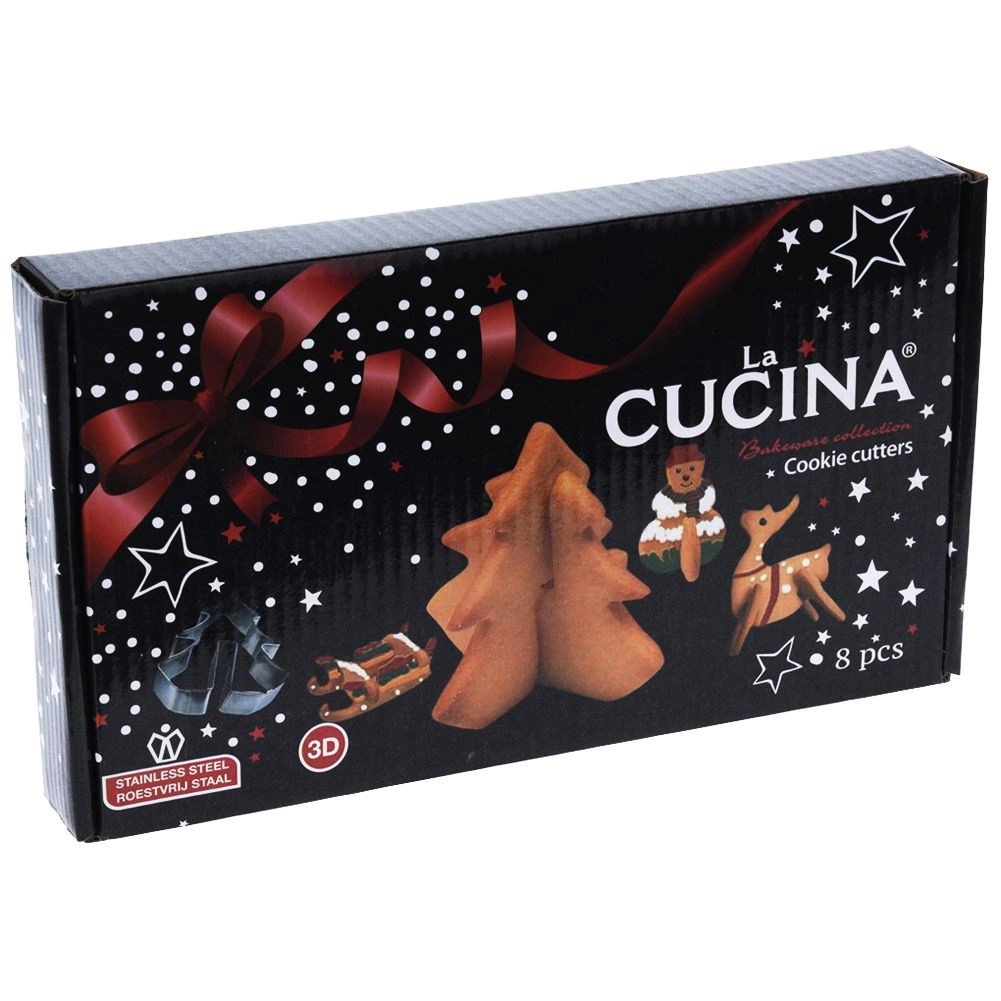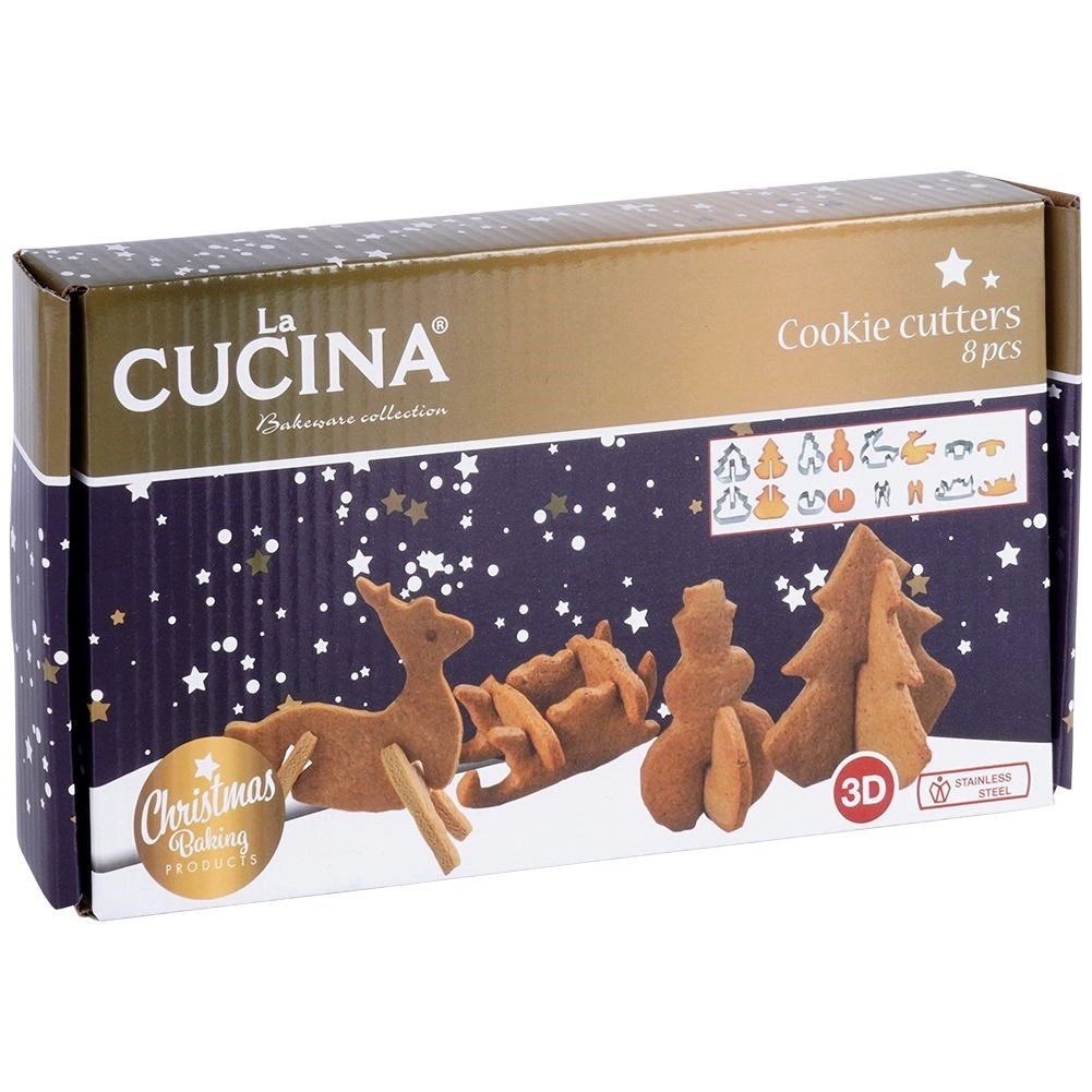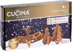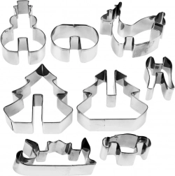 Sada obsahuje 8 kusů pro přípravu 4 různých 3D motivů: vánoční stromek, sněhulák, sob a sáně. Rozměry jednotlivých dílů se pohybují přibližně v šířce 4,5–9,5 cm a délce 3,5–8,5 cm. Vykrajovátka jsou univerzální – hodí se i na fondán či modelovací hmoty pro zdobení dortů a dezertů.