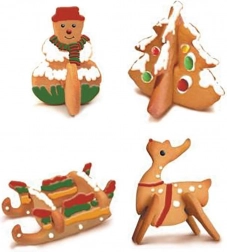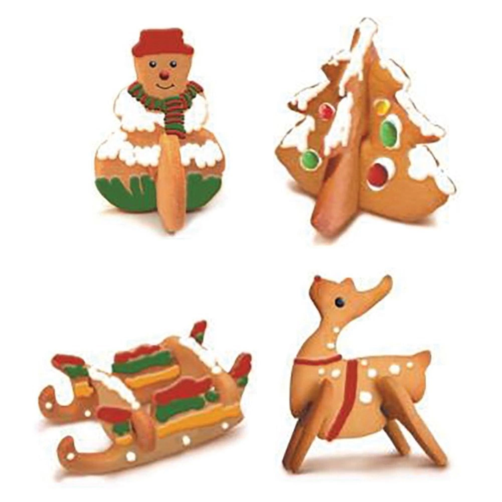 Sada vyřezává díly, které po upečení do sebe zapadnou a vytvoří stojící figurky – stromek, sněhulák, sob a sáně. Ideální pro sváteční pečení a dekorace.