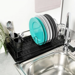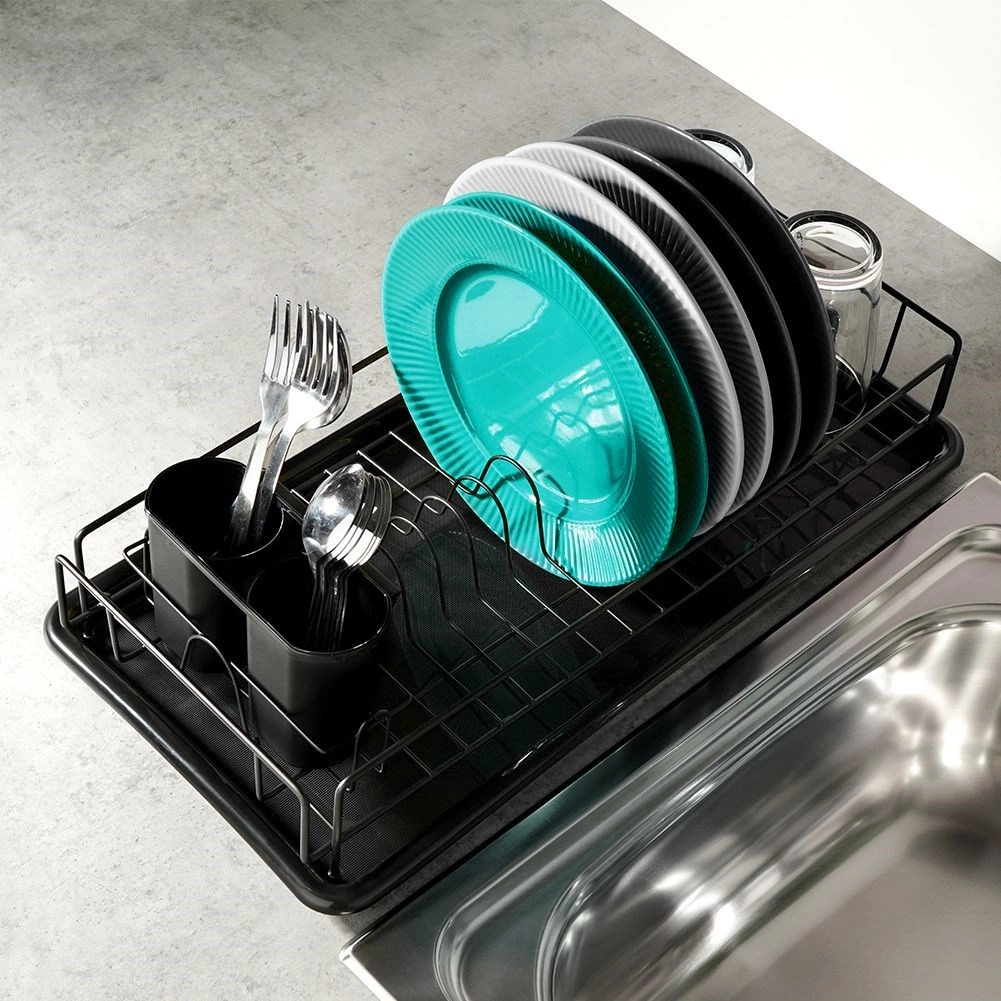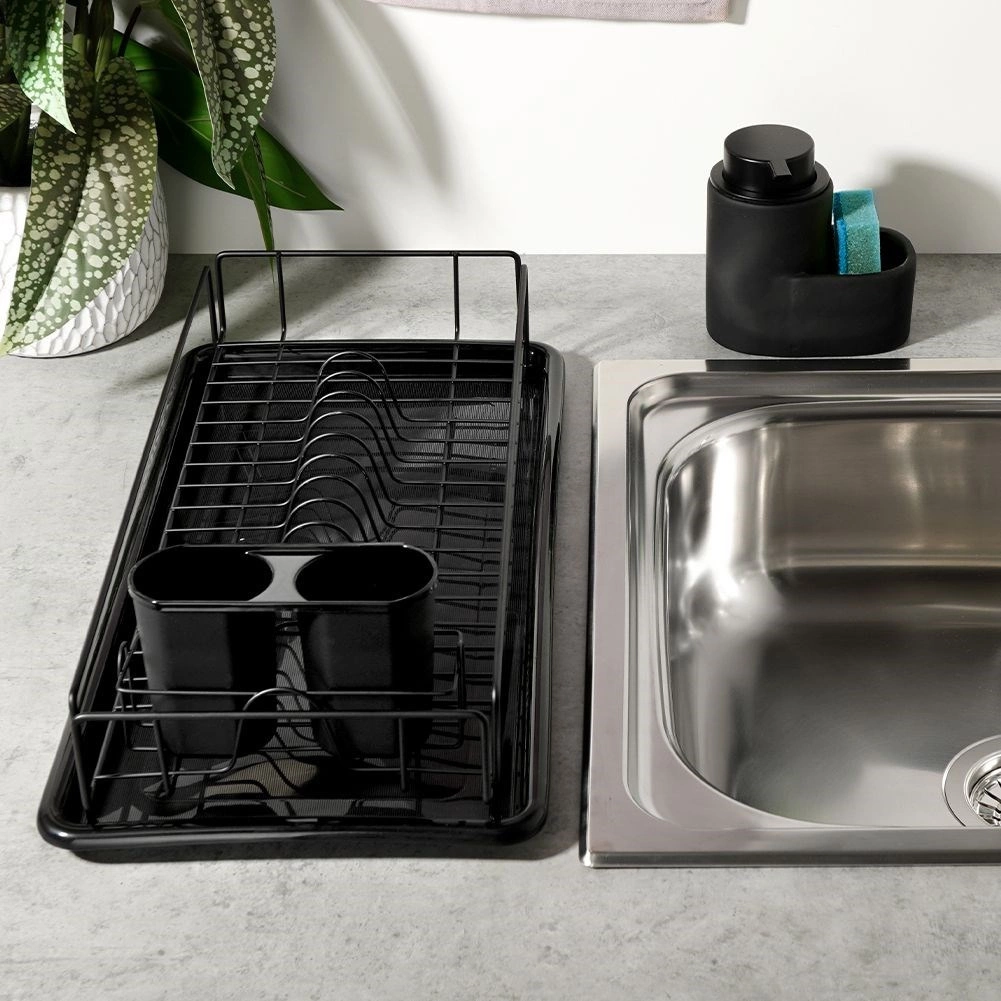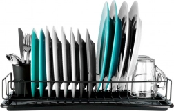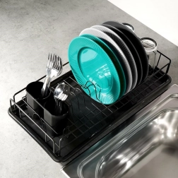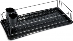 Součástí je dvoukomorový, odnímatelný košík na příbory, který můžete umístit dovnitř sušáku nebo zvenčí podle potřeby. Minimalistický vzhled a nadčasová černá barva ladí s klasickými, moderními i industriálními interiéry.