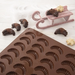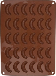 Tato univerzální silikonová forma v oranžové barvě je ideální pro pečení sušenek ve tvaru rohlíčků, ale také pro čokoládky a pralinky. Je lehká, pružná, šetří místo v kuchyni a skvěle vede teplo pro rovnoměrné propečení. Materiál neabsorbuje pachy ani chutě a hotové kousky snadno vyjmete.