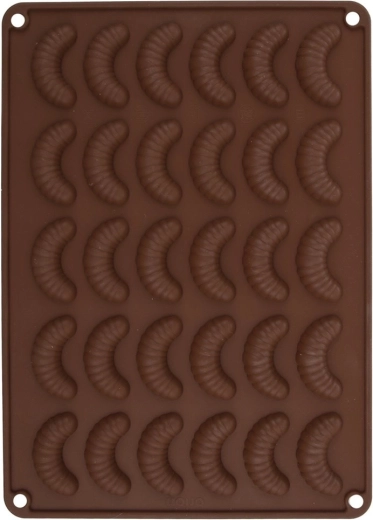 Praktická silikonová forma pro pečení křehkých rohlíčků vám umožní najednou připravit až 30 kusů o délce 5,5 cm. Je odolná vůči teplotám -40 až +220 °C, vhodná do trouby, mikrovlnky i mrazáku a lze ji mýt v myčce. Díky nepřilnavému povrchu těsto nelepí a není nutné používat tuk ani mouku.