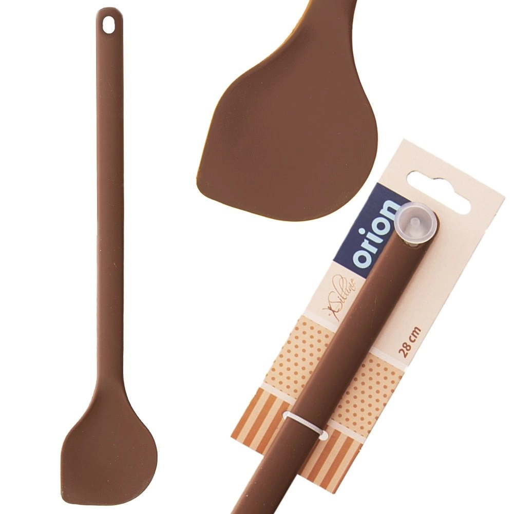 Tato hnědá silikonová kuchyňská stěrka je spolehlivý pomocník pro míchání, roztírání, obracení i servírování. Kvalitní silikon s vnitřní kovovou výztuhou zajišťuje ideální kombinaci stability a pružnosti, takže pohodlně dosáhnete do misek i pánví bez poškrábání povrchu.