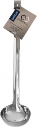 Praktická kuchyňská naběračka o objemu 45 ml a délce 26 cm je ideální pro servírování polévek a omáček. Je vyrobena z kvalitní nerezové oceli, má dlouhou rukojeť pro pohodlné držení a boční výlevku pro přesné nalévání. Snadno se čistí a díky otvoru ji lze zavěsit na kuchyňský reling.