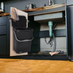 Koš lze jednoduše zavěsit na dvířka skříňky nebo upevnit na stěnu. Má kompaktní tvar, který se skvěle vejde pod dřez a uvolní místo na podlaze.