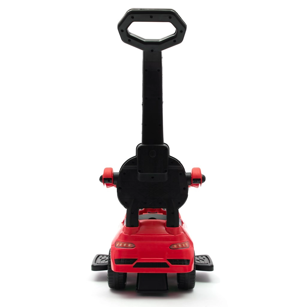 Pro bezpečnou jízdu slouží speciální blokáda proti převrácení, široká kola a boční bezpečnostní opěrky. Když dítě povyroste, lze vodicí tyč, opěrky rukou i podnožky snadno sejmout a z jezdítka se stane klasické odrážedlo pro aktivní jízdu.