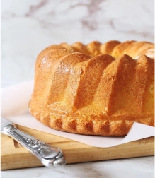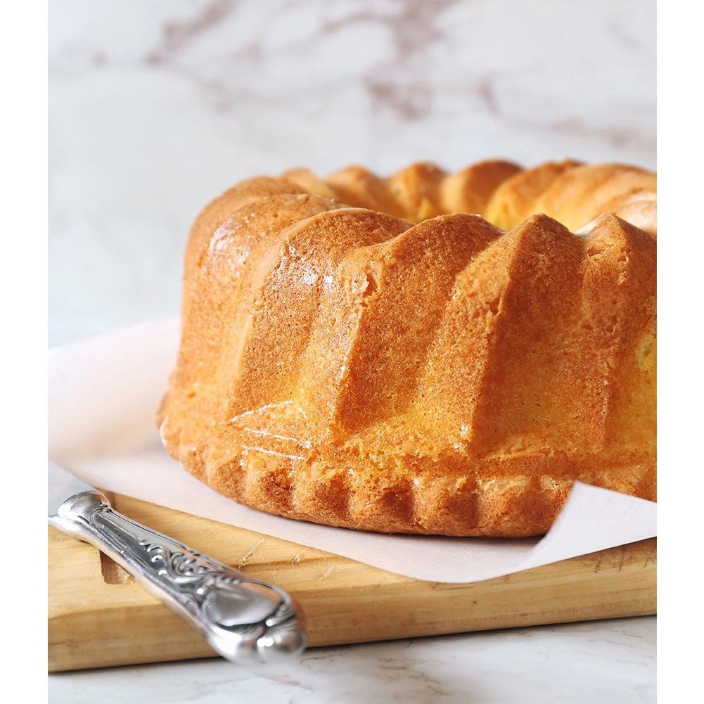 Žebrované boky a středový komín pečou rovnoměrně a vytvářejí efektní, křupavý povrch bábovky.