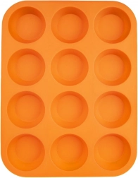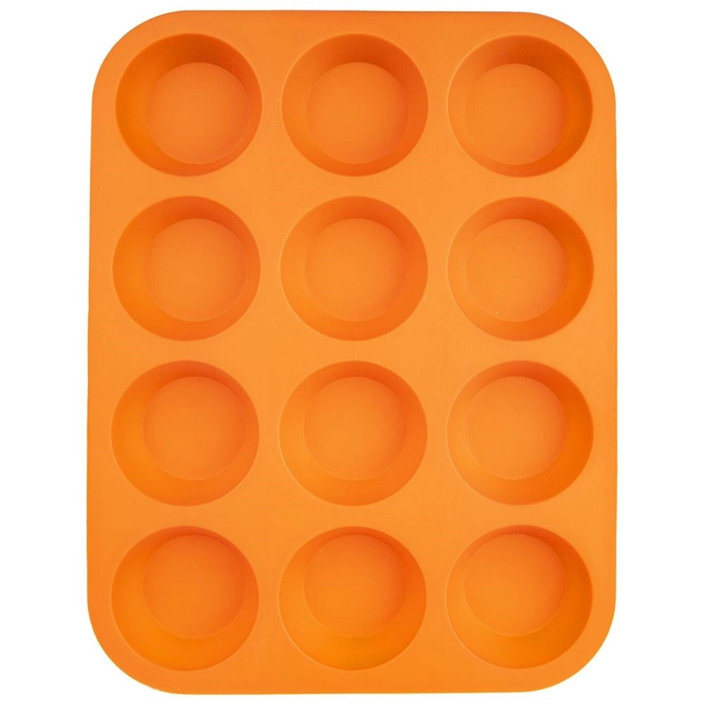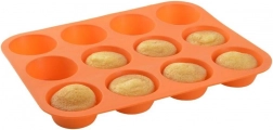 Silikonová forma na muffiny pro 12 kusů v praktickém oranžovém provedení z odolného nepřilnavého silikonu. Je flexibilní, lehké s ní vyjímání upečených muffinů, odolá teplotám -40 °C až +220 °C a lze ji mýt v myčce. Vhodná do trouby, mikrovlnky, lednice i mrazáku.