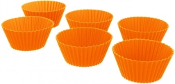 Praktická sada šesti silikonových formiček na muffiny o průměru 5,5 cm a výšce 3 cm v oranžové barvě. Formičky jsou pevné a pružné, nepřilnavé a vícekrát použitelné. Díky odolnosti vůči teplotám -40 °C až +220 °C se hodí do trouby, mikrovlnky i mrazáku a lze je mýt v myčce.