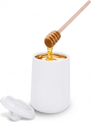Dóza je z odolného bílého porcelánu, lžička z přírodního dřeva pro pohodlné a šetrné nabírání medu.
