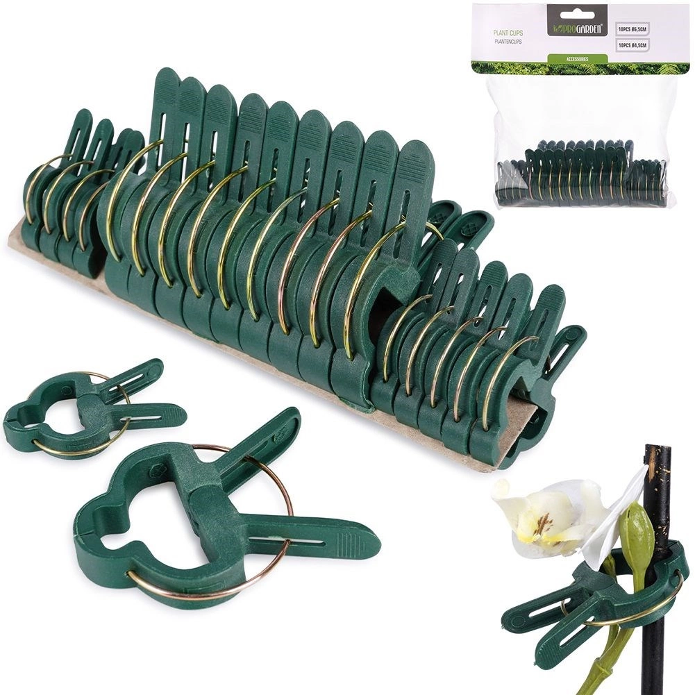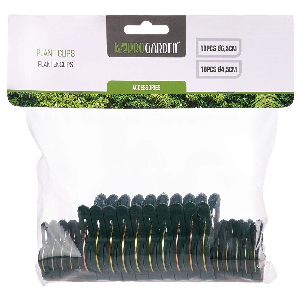 Sada zahradních klipsů PROGARDEN ve dvou velikostech (10× 4,5 cm a 10× 6,5 cm) usnadní vyvazování a tvarování rostlin doma i na zahradě. Pružinový mechanismus s jistým úchopem drží stonky u tyček či mřížek, aniž by je mačkal.