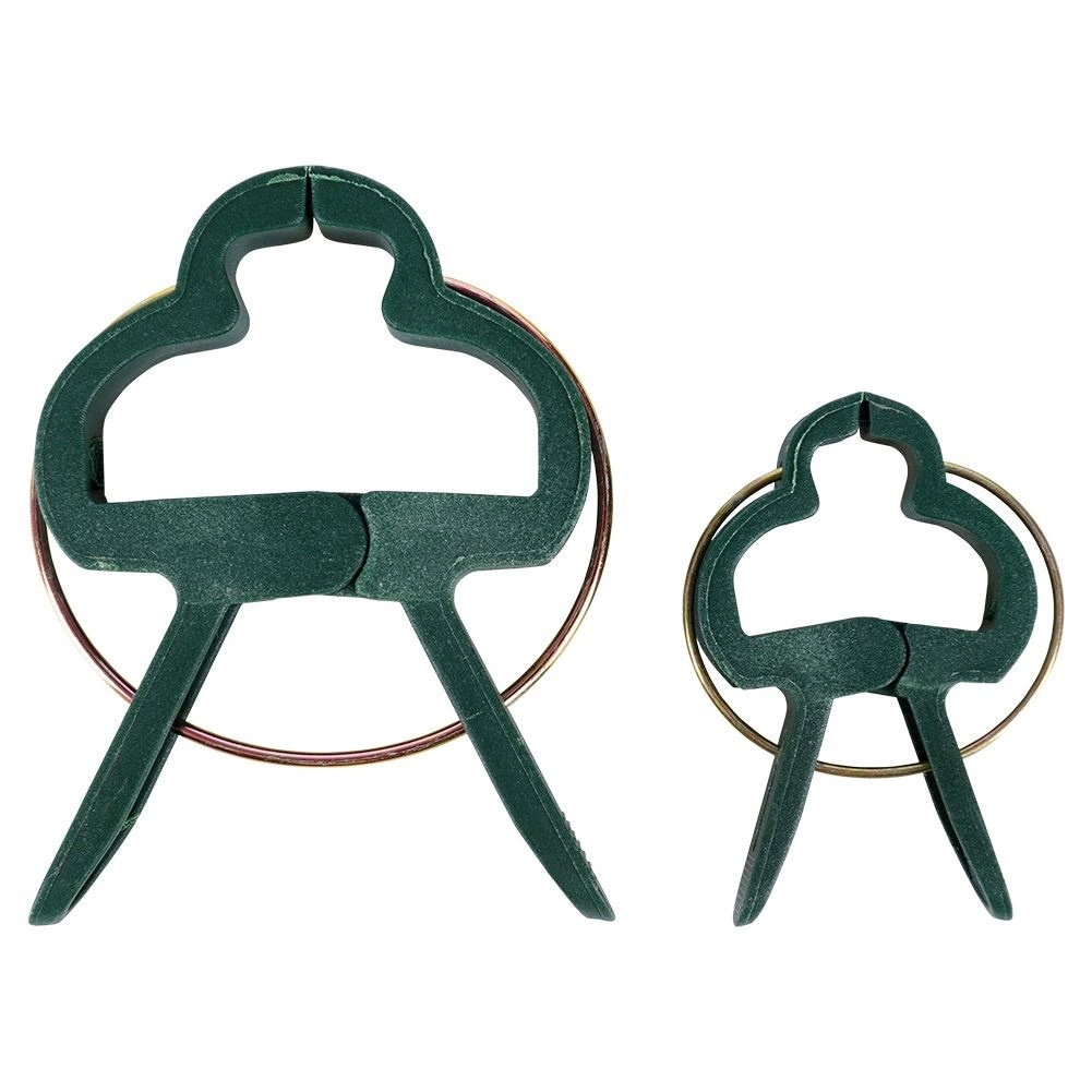 Pružinový mechanismus s rýhovanými čelistmi drží pevně, ale bez poškození rostlin. Ideální pro přichycení ke kůlům a oporám.