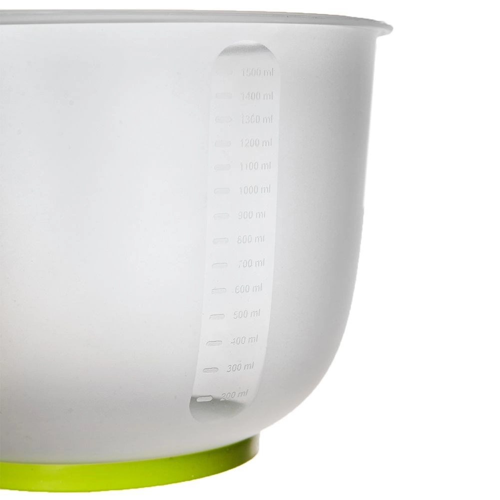 Tato lehká a zároveň odolná mísa s objemem 1,5 litru je skvělým pomocníkem pro každodenní vaření i pečení. Integrovaná měrná stupnice umožňuje přesné odměření surovin přímo v míse, takže nepotřebujete další náčiní. Vysoké stěny omezují rozstřikování při intenzivním šlehání.