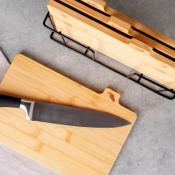 Bambus je tvrdý, tvarově stálý materiál, který nepohlcuje pachy a rychle schne. Je šetrný k ostří nožů a vhodný pro každodenní používání.
