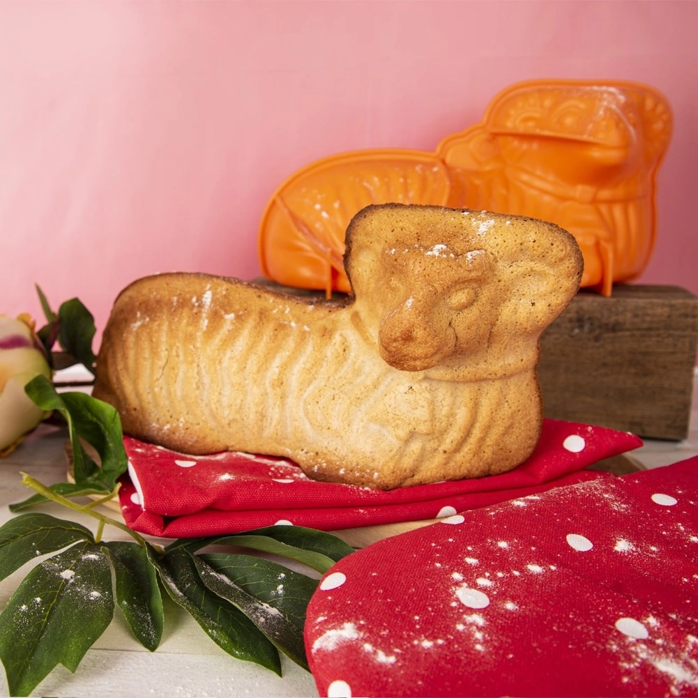 Praktická silikonová forma na tradičního velikonočního beránka v oranžové barvě. Je nepřilnavá, flexibilní a odolná vůči teplotám -40 °C až +200 °C. Díky výborné tepelné vodivosti zkracuje dobu pečení a stabilizační výztuhy zajišťují pevnost při používání. Snadno se čistí, je vhodná do myčky, mikrovlnky, lednice i mrazáku.