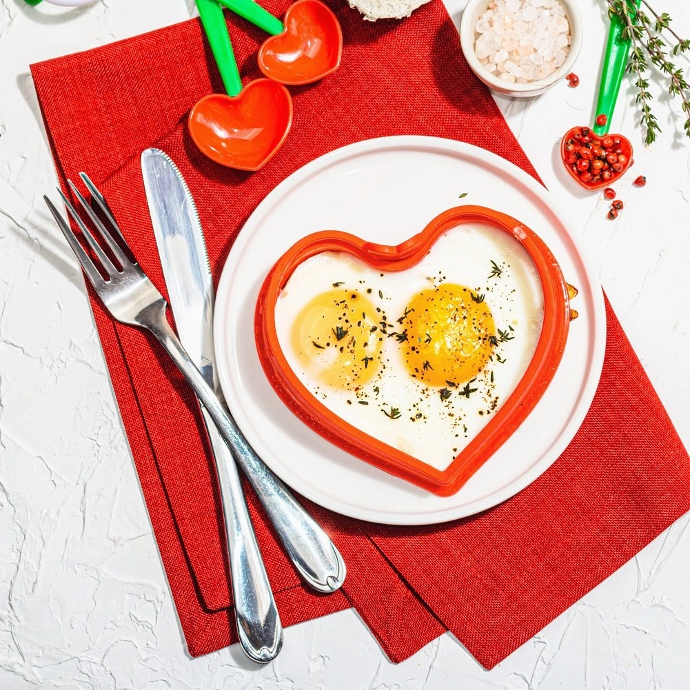 S touto silikonovou formou na vejce ve tvaru srdce snadno připravíte vajíčka na oko, mini lívance, omelety či další slané i sladké dobroty v efektním tvaru. Díky nepřilnavému povrchu se těsto ani vejce nelepují a hotové tvary snadno vyjmete bez nutnosti použít olej nebo mouku.