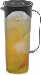 Praktický džbán z kvalitního, lehkého a odolného plastu v černém provedení skvěle poslouží doma, na zahradě i při oslavách. Transparentní tělo umožní kontrolu hladiny a efektní prezentaci nápojů s ovocem či bylinkami. Díky kompaktním rozměrům se pohodlně vejde do chladničky.