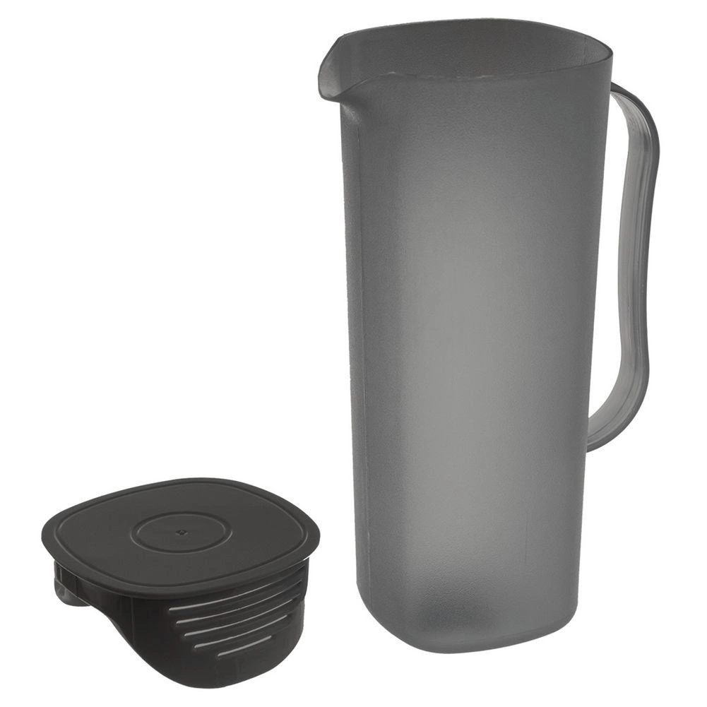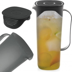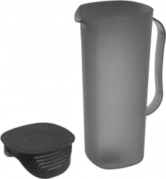 Elegantní plastový džbán s víkem o objemu 1,8 l je ideální pro servírování vody, limonády či ledového čaje. Má pohodlné ucho, tvarovaný zobáček pro přesné nalévání a víko se sítkem, které zadrží led a ovoce a zároveň chrání nápoj před hmyzem. Lehký, odolný a vhodný do myčky.