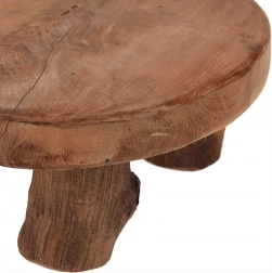 Tato kulatá servírovací deska je ručně vyrobena z kvalitního teakového dřeva a stojí na pevných nožkách pro maximální stabilitu a atraktivní prezentaci. Přírodní kresba dřeva a rustikální zpracování dodají každému stolování autentický šmrnc, ať už servírujete tapas, zákusky, sýry či uzeniny.