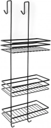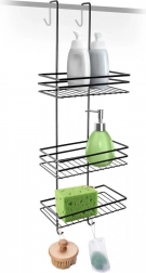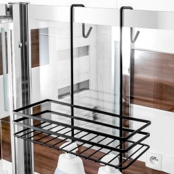 Polička nabízí 3 úložné úrovně pro šampony, kondicionéry, mýdla i větší balení a 4 praktické háčky – dva uvnitř pro houby a kartáče a dva venku pro ručníky či župany. Jednoduše ji zavěsíte na horní okraj skleněné stěny sprchového koutu a stejně snadno kdykoliv sejmete.