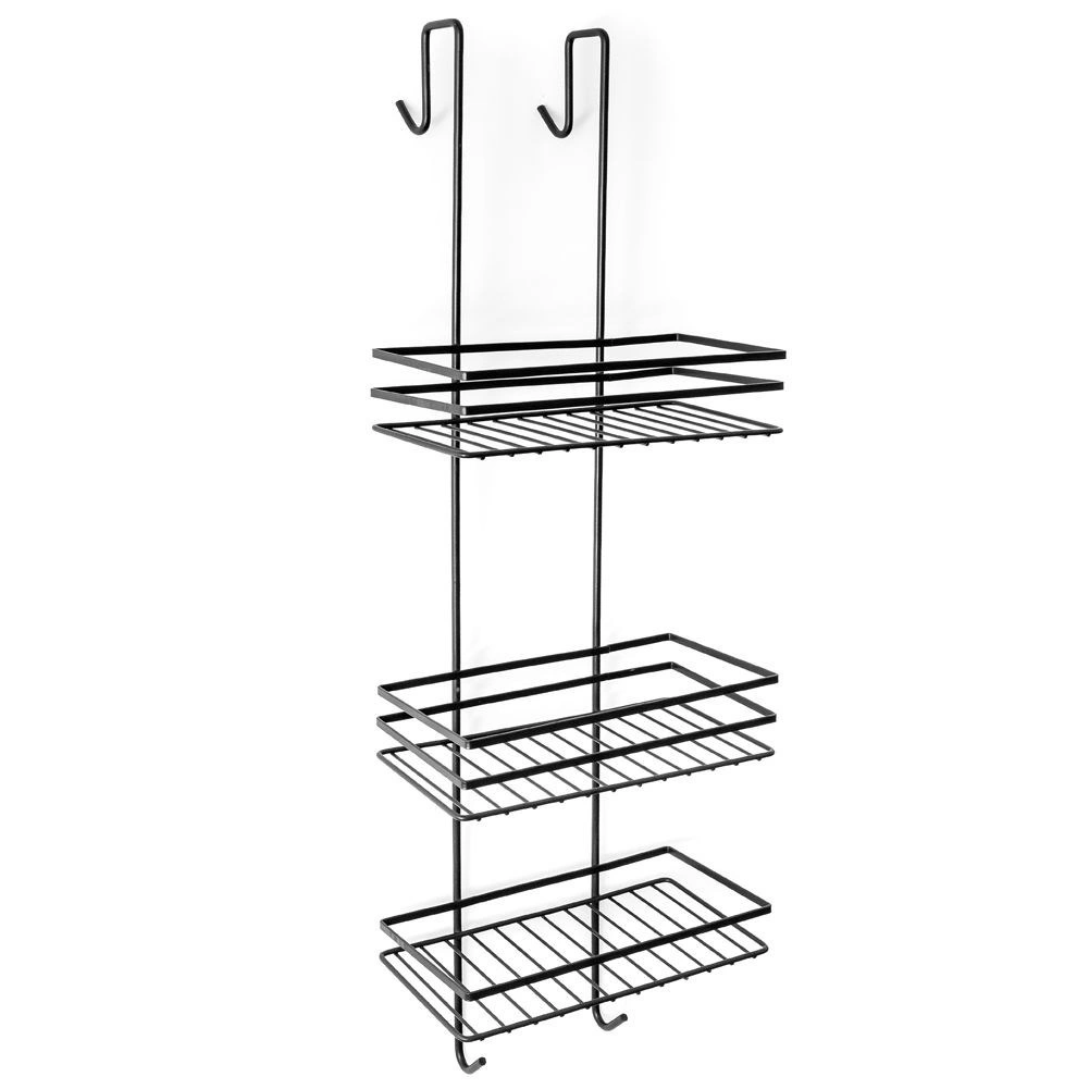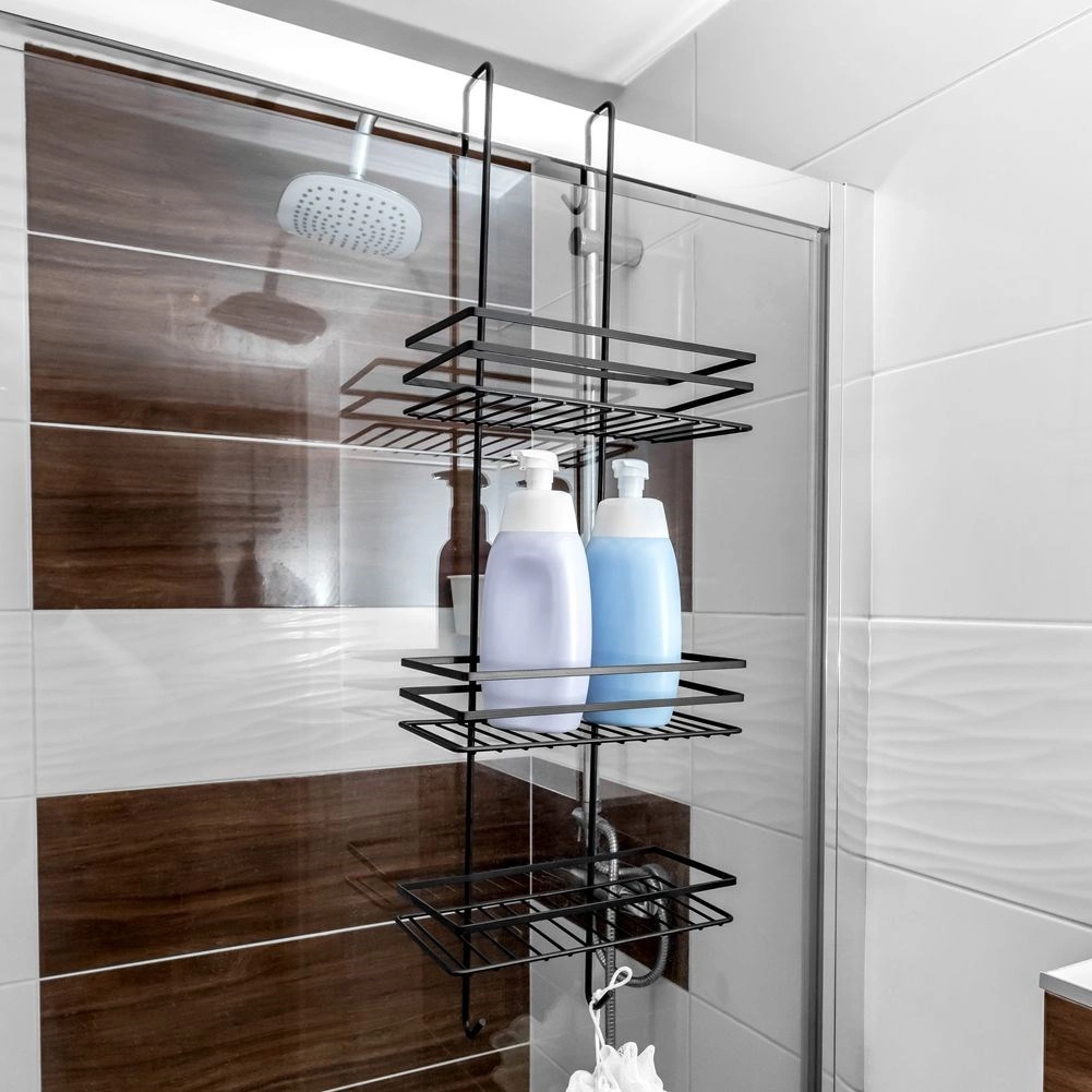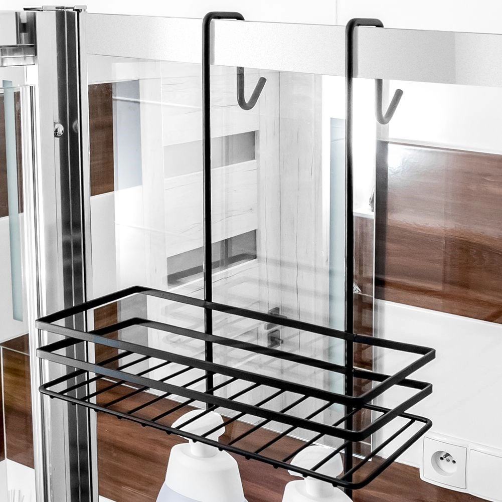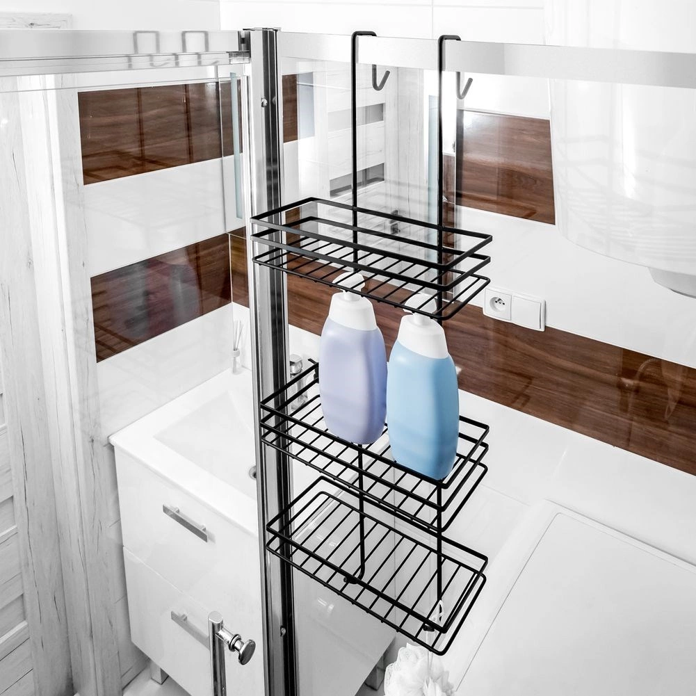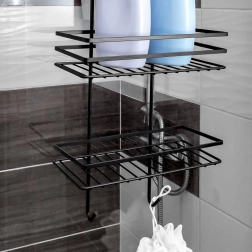 Praktická závěsná sprchová polička v elegantní černé barvě udrží všechny vaše nezbytnosti přehledně na dosah. Nabízí tři prostorné police pro šampony a gely, čtyři háčky na houby a kartáče a bezvrtací montáž zavěšením přes horní hranu skleněných dveří sprchy. Odolný kov s práškovým lakem zajišťuje dlouhou životnost a snadnou údržbu.