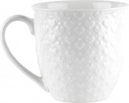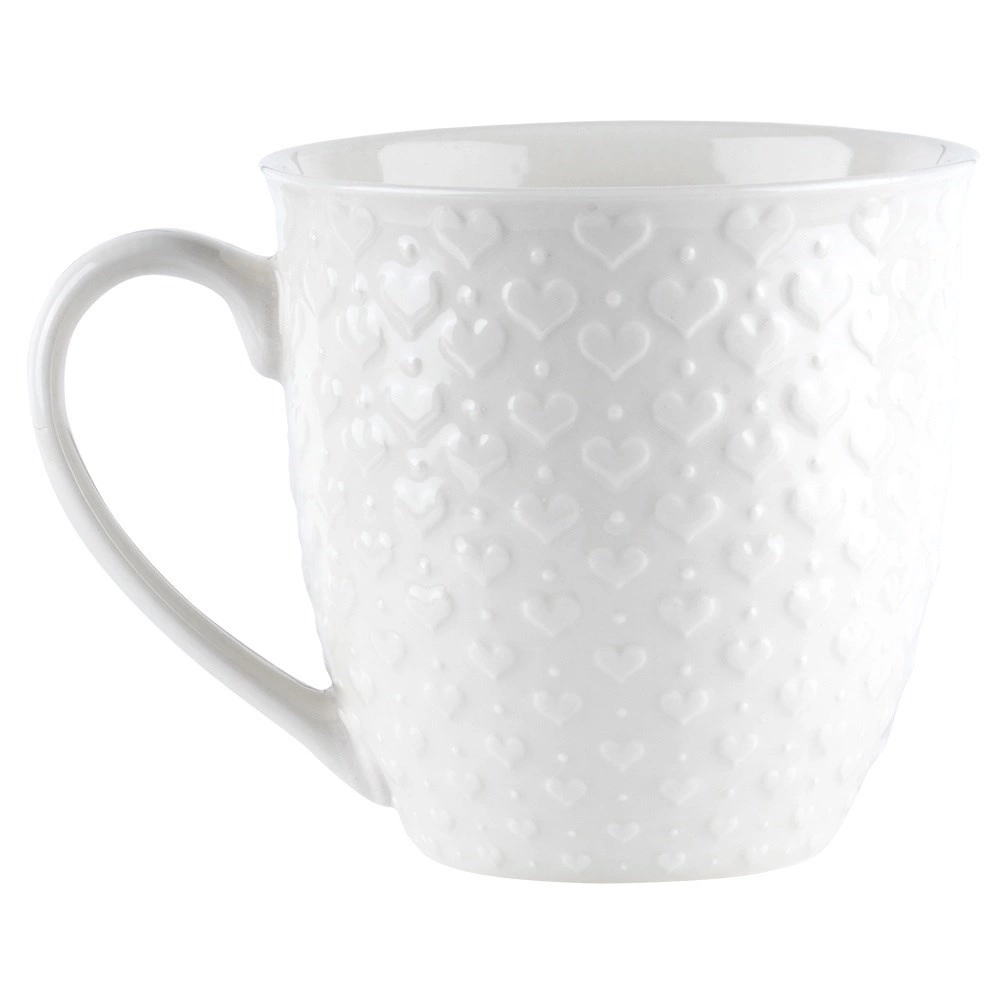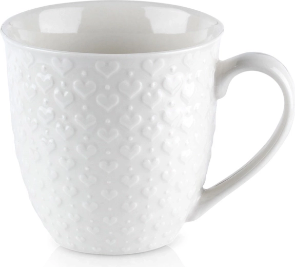 Užijte si svou oblíbenou kávu nebo čaj ve velkém objemu 580 ml. Tento bílý keramický hrnek s plastickým dekorem srdíček spojuje elegantní vzhled a praktické použití pro každodenní chvíle pohody. Ergonomické ucho se příjemně drží a zajišťuje jistý úchop.