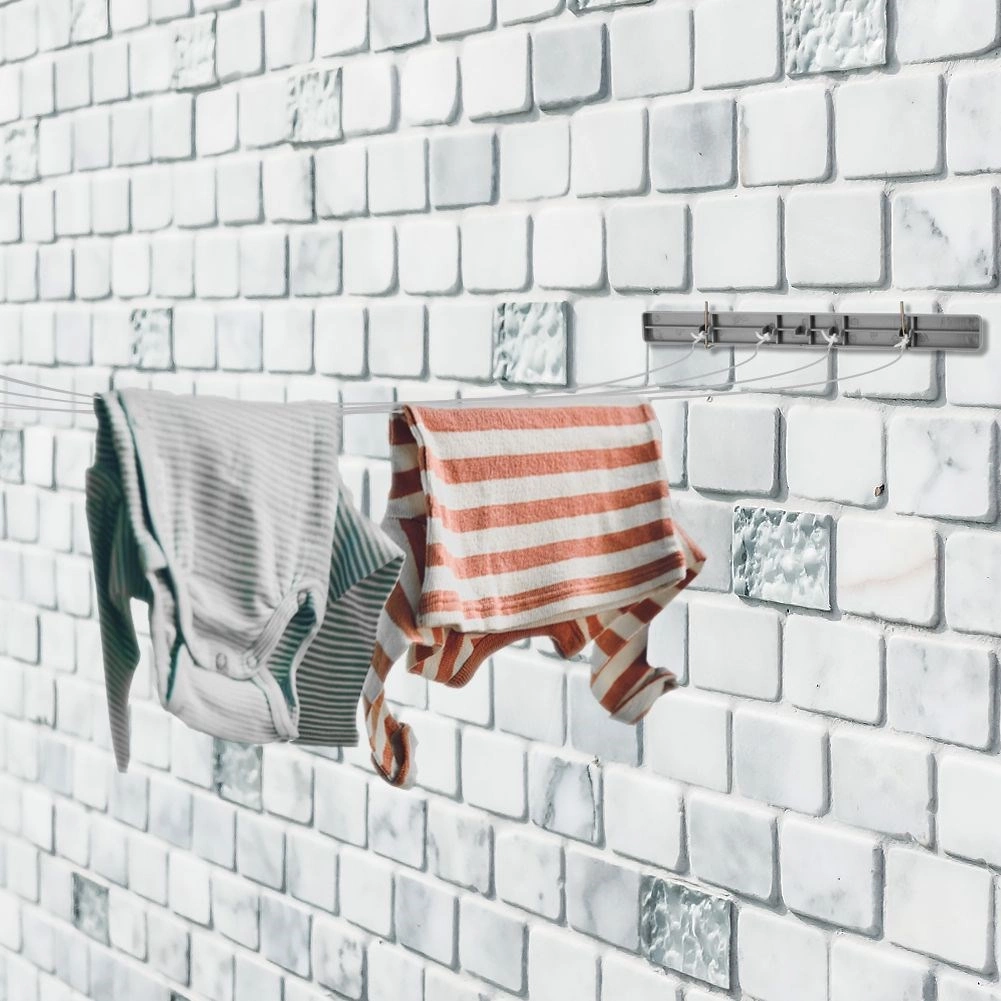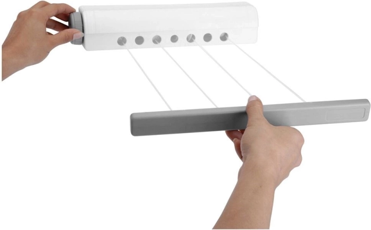 Instalace je rychlá a snadná – stačí jej upevnit na protilehlé stěny ve vzdálenosti do cca 360 cm. Po složení zabírá minimum místa a zachová čistý vzhled interiéru. Skvěle se hodí do koupelny, prádelny či sušárny.