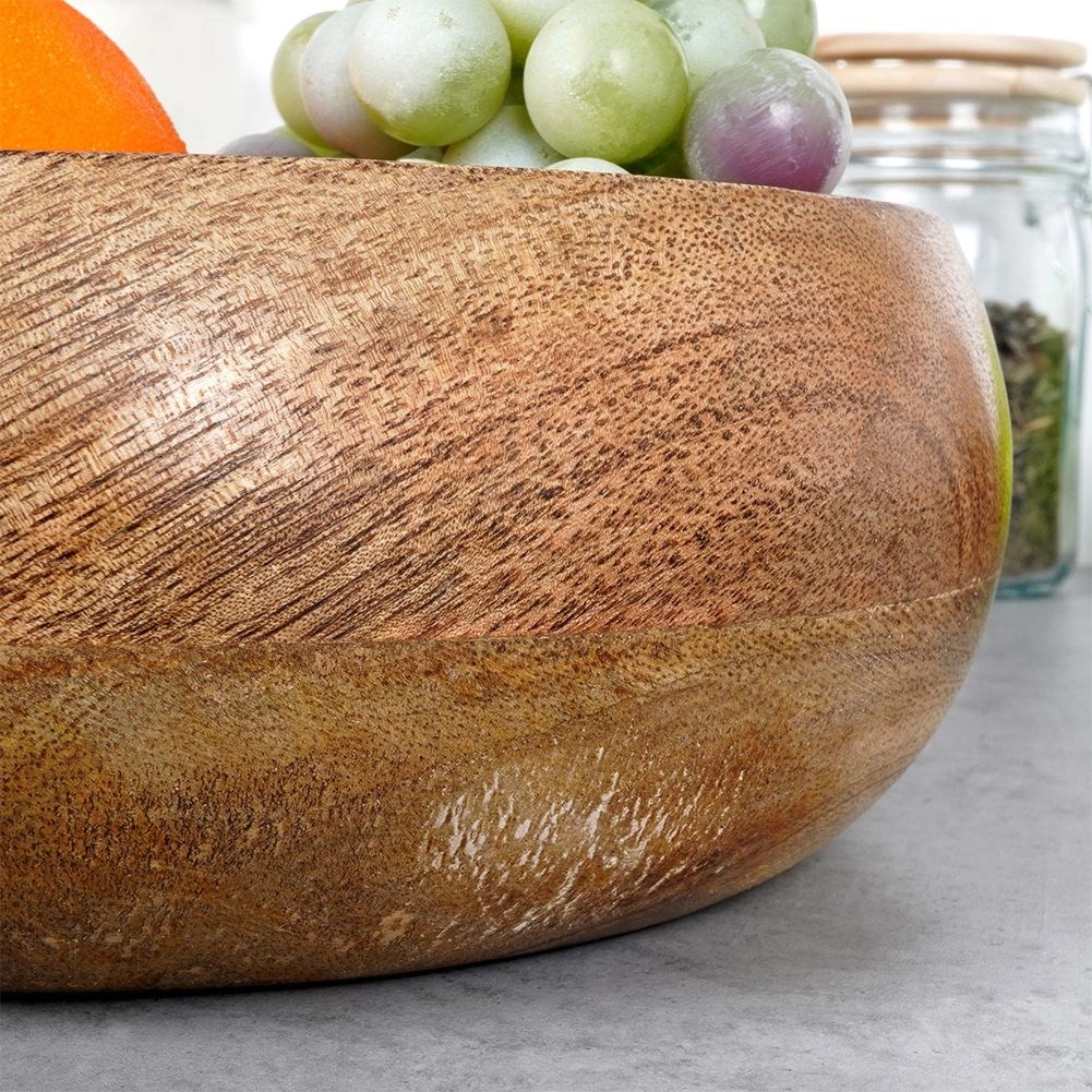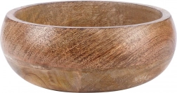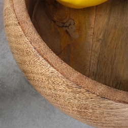 Tato miska z mangového dřeva kombinuje funkčnost a estetiku. Je ideální na podávání oříšků, chipsů, popcornu, sušeného i čerstvého ovoce. Díky přírodnímu odstínu a výrazné struktuře dřeva se hodí k jakékoli stolní sestavě a sama o sobě působí jako dekorativní prvek.