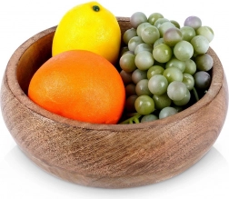 Stylová dřevěná miska z exotického dřeva manga o průměru 18,5 cm a objemu 900 ml je ideální pro servírování svačin, ovoce i dekorativní aranžmá. Vyniká přírodní kresbou dřeva, odolností proti vlhkosti a univerzálním použitím v kuchyni i jídelně. Skvělá volba pro každodenní servírování i jako elegantní doplněk interiéru.