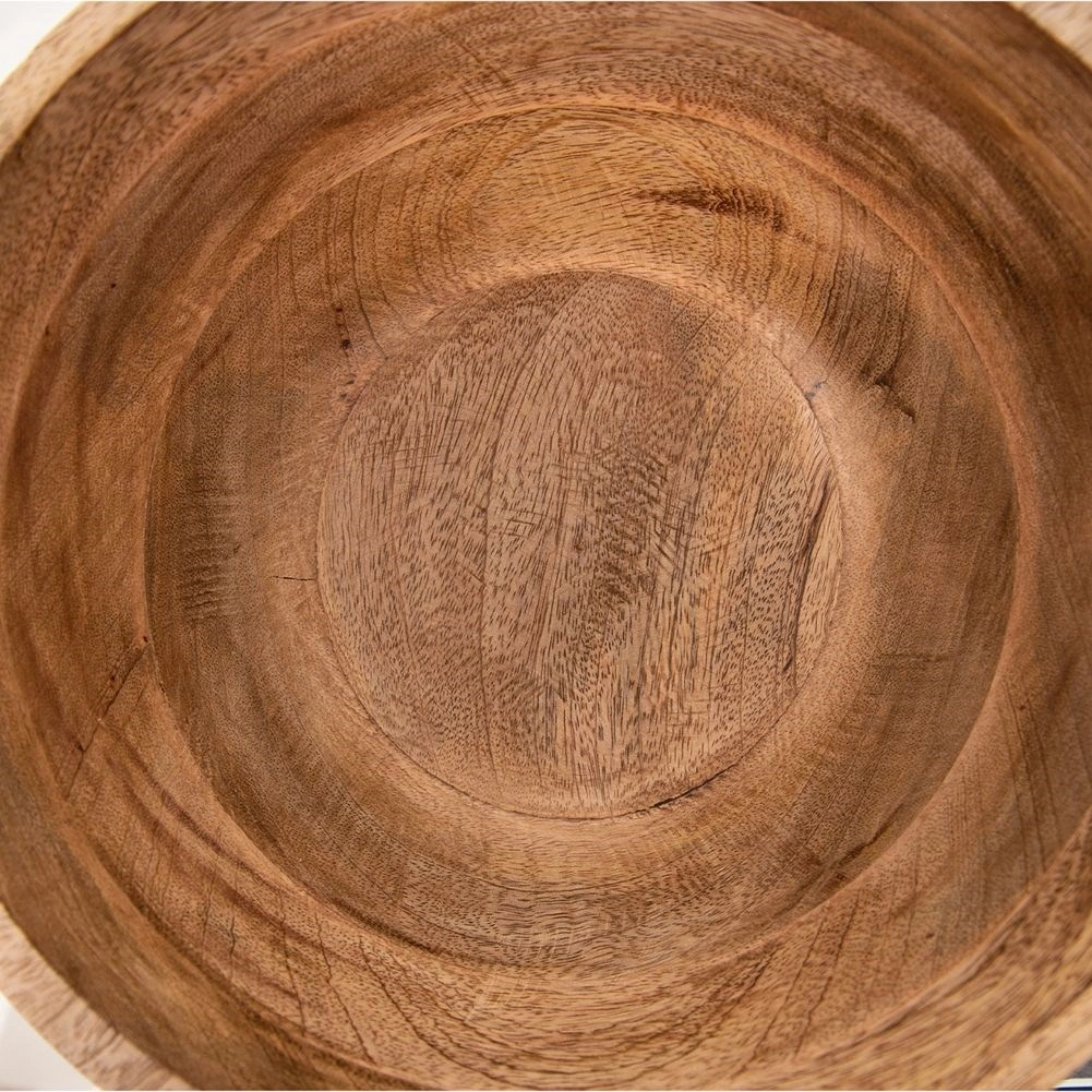 Dekorativní bělené žlábky a teplý odstín mangového dřeva promění misku v funkční i estetický doplněk stolu.