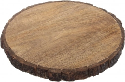 Rustikální kulatý plátek z mangového dřeva s přírodní kůrou o průměru cca 30 cm a tloušťce 2,5 cm. Ideální jako krájecí deska, servírovací prkénko či dekorativní podložka. Mangové dřevo je odolné vůči vlhkosti, nedeformuje se, nepohlcuje pachy a rychle schne. Každý kus je originál a vnese do interiéru přírodní, rustikální styl.