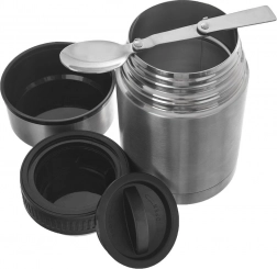 Kompaktní nerezový jídelní termos udrží vaše pokrmy dlouho teplé i studené. Díky vakuové izolaci s dvojitou stěnou, širokému hrdlu pro snadné plnění a čištění a skládací lžičce v uzávěru je ideální do práce, do školy i na cesty. Těsnící víčko zabraňuje únikům a udržuje čerstvost.
