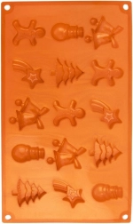 - Vánoční motivy – 5 tvarů (panáček, stromek, sněhulák, hvězda, zvonek), celkem 15 ks na jeden plech.