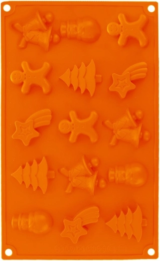 Silikonová forma na pečení s motivy Vánoc umožní připravit až 15 kusů cukroví či pralin v pěti tvarech: panáček, stromeček, sněhulák, hvězda a zvoneček. Je odolná od -40 °C do +220 °C, vhodná do trouby, mikrovlnky i mrazáku a lze ji mýt v myčce. Díky nepřilnavému silikonu se těsto snadno vyklápí a forma nepohlcuje pachy ani chutě.