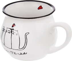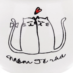 Stylový keramický hrnek o objemu 300 ml s motivem zamilovaných koček. Nabízí pohodlné ucho, je vhodný do myčky i mikrovlnky a skvěle se hodí na kávu, čaj i kakao. Kvalitní keramika v bílé barvě zajišťuje dlouhou životnost a elegantní vzhled na každém stole.