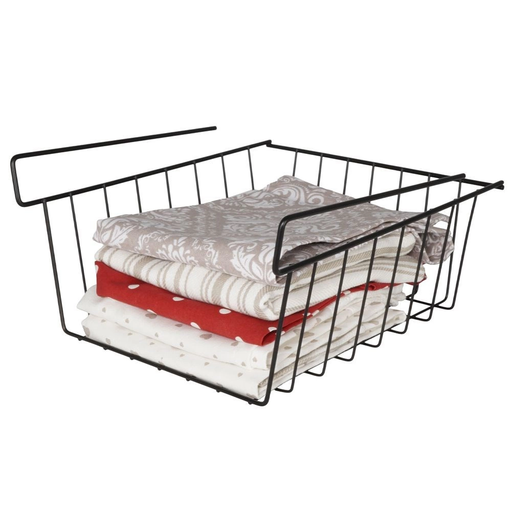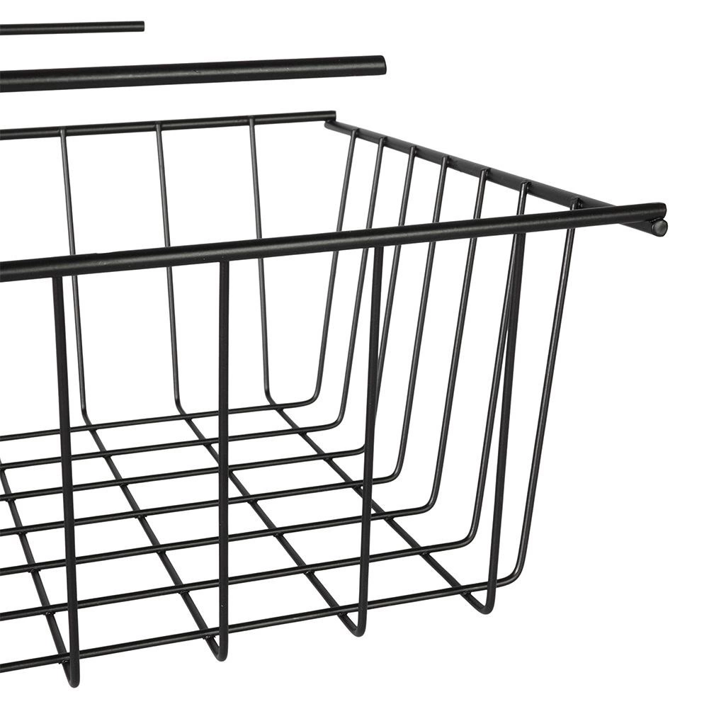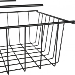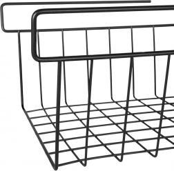 Uspořádejte kuchyň, koupelnu, šatnu i kancelář s tímto závěsným košíkem pod policí. Kovová konstrukce v industriálním stylu loft je pevná a odolná, otevřené drátěné stěny zaručují perfektní přehled o obsahu a cirkulaci vzduchu. Bezvrtání a bez nářadí: košík stačí jednoduše nasunout na hranu police a okamžitě využít nevyužité místo pod ní.