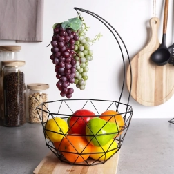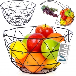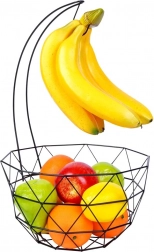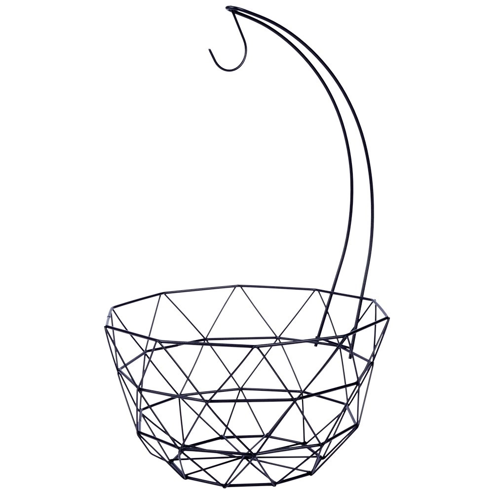 Tento elegantní černý košík je ideální pro vystavení a skladování ovoce i zeleniny na kuchyňské lince či jídelním stole. Odnímatelný háček umožní zavěšení banánů nebo hroznů, čímž předchází otlakům a podporuje rovnoměrné dozrávání. Minimalistická geometrická konstrukce působí dekorativně a zároveň udržuje obsah přehledný.