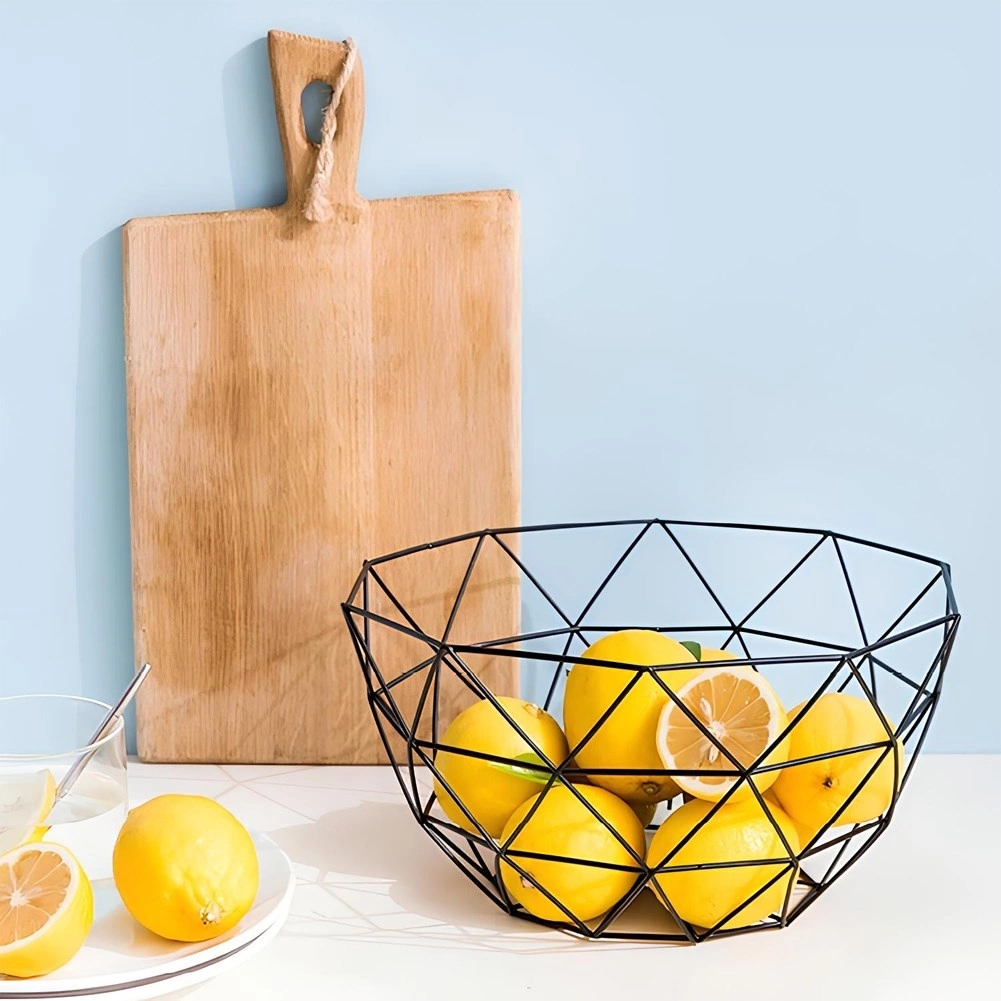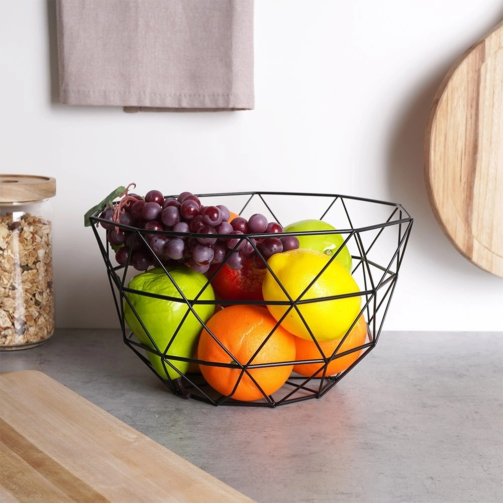 Otevřené drátěné stěny podporují cirkulaci vzduchu a pomáhají udržet ovoce déle čerstvé, zároveň zvyšují přehlednost obsahu.