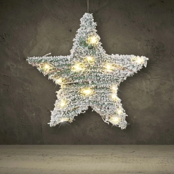 Stylová svítící hvězda o průměru 40 cm s 30 teplými bílými LED promění každý interiér v útulné zimní království. Realistické větvičky s efektem sněhu, napájení na baterie a praktická funkce časovače z ní dělají ideální vánoční dekoraci na stěnu, dveře i do okna.