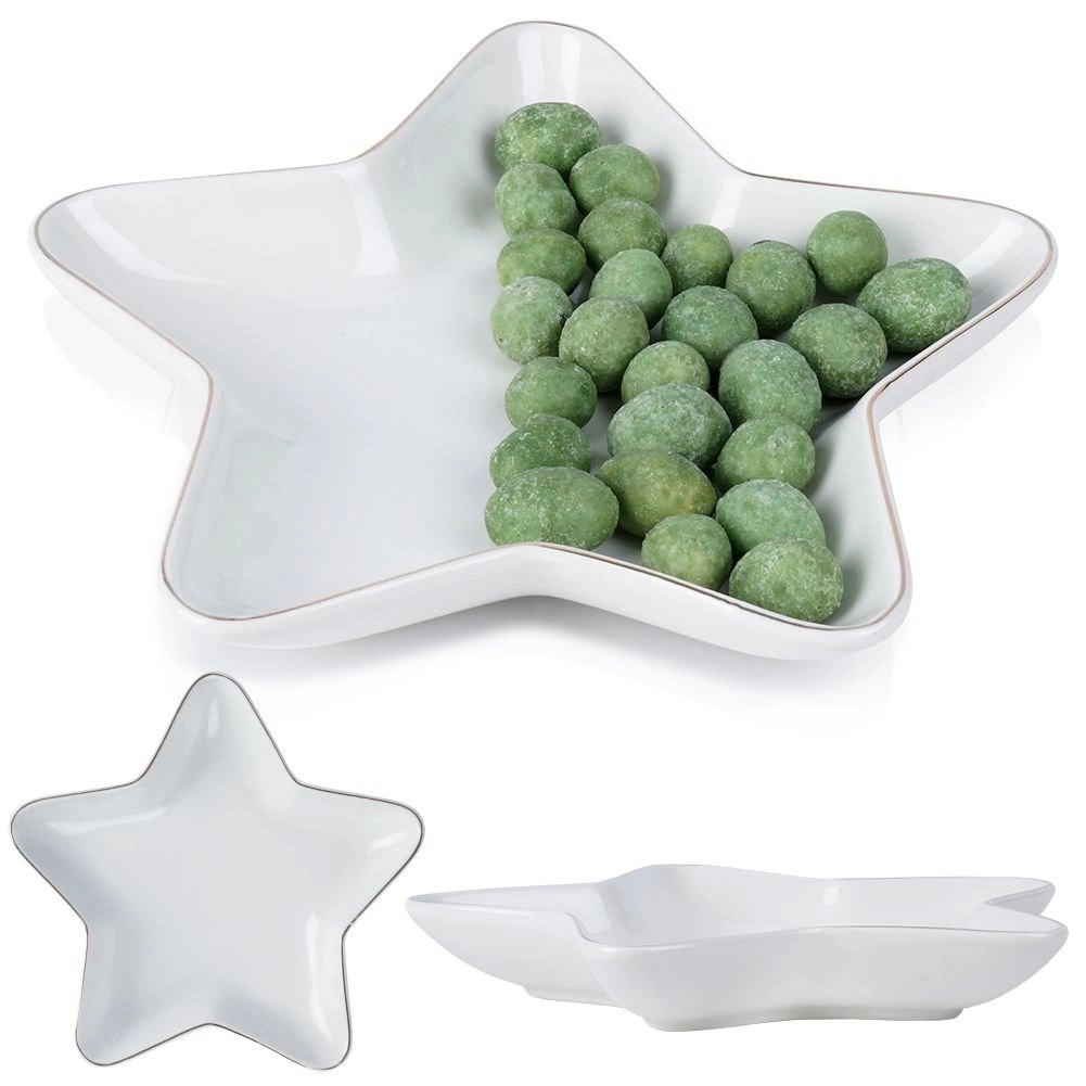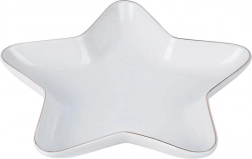 Vytvořte na stole sváteční atmosféru s tímto dekorativním talířem ve tvaru hvězdy. Kvalitní porcelán v bílé barvě a decentní design podtrhnou servírování cukroví, oříšků, jednohubek i drobných dezertů. Talíř je pevný, odolný a díky praktickým rozměrům se hodí do každé domácnosti.