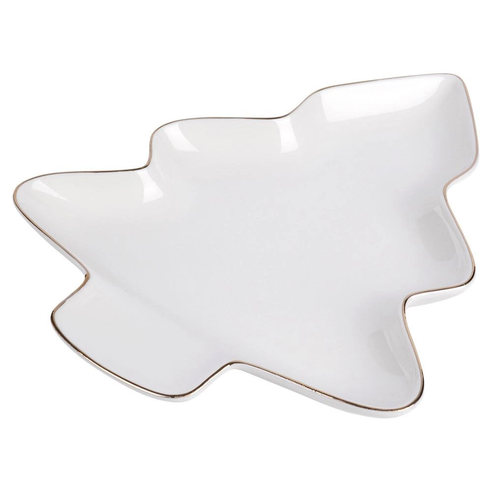 Vytvořte působivou sváteční tabuli s porcelánovým talířem ve tvaru vánočního stromku. Nadčasová bílá se zlatým okrajem zvýrazní podávané dobroty a dodá stolování elegantní nádech během zimní i vánoční sezóny.