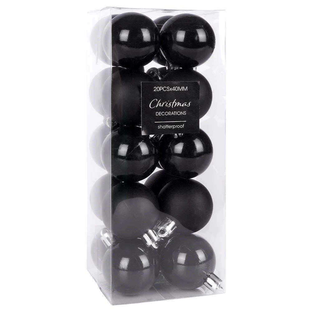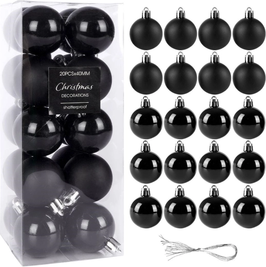 Elegantní sada 20 kusů vánočních koulí v černé barvě přináší moderní vzhled a maximální bezpečí. Koule o průměru 4 cm jsou z kvalitního plastu, takže jsou nerozbitné, lehké a ideální do domácností s dětmi i domácími mazlíčky. V balení najdete lesklé i matné provedení pro stylové kombinování a vytvoření jedinečné sváteční atmosféry.