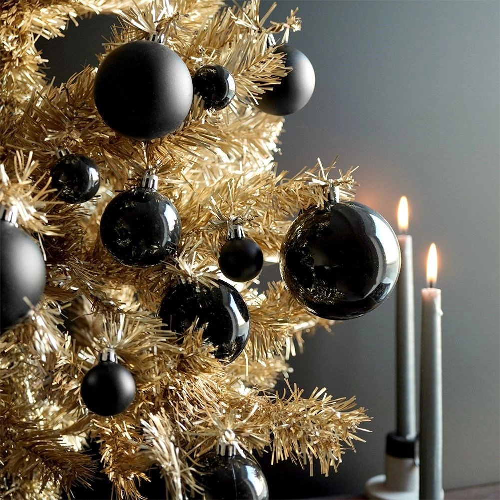 S touto sadou černých vánočních ozdob snadno vykouzlíte moderní a elegantní vánoční výzdobu. Kombinace matných a lesklých povrchů dodá stromku i dekoracím hloubku a efekt kontrastu, který skvěle ladí s interiéry ve stylu loft či industrial. Díky nerozbitnému materiálu jsou bezpečnou alternativou ke sklu.