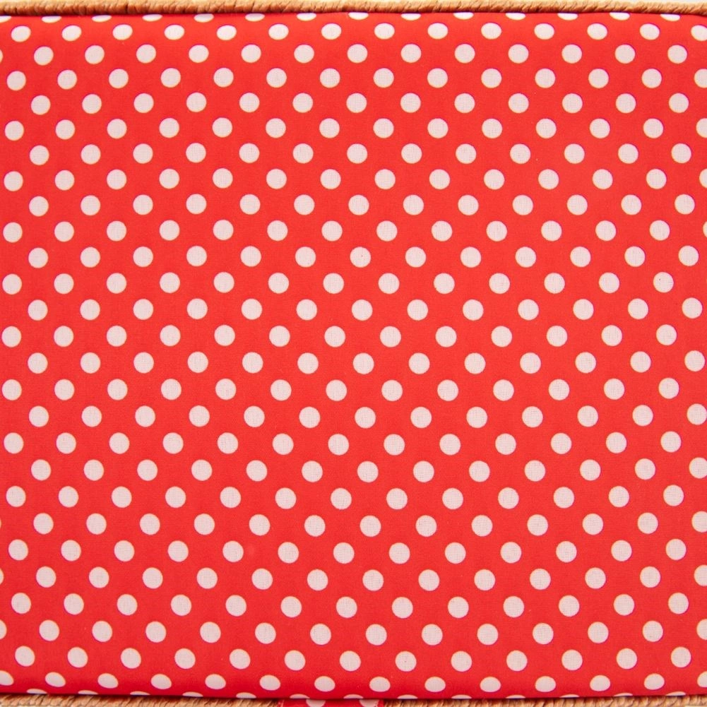 Červená látka s bílými puntíky a dekorativní opletení dodají šití šmrnc a košík krásně zapadne do každé domácí dílny.