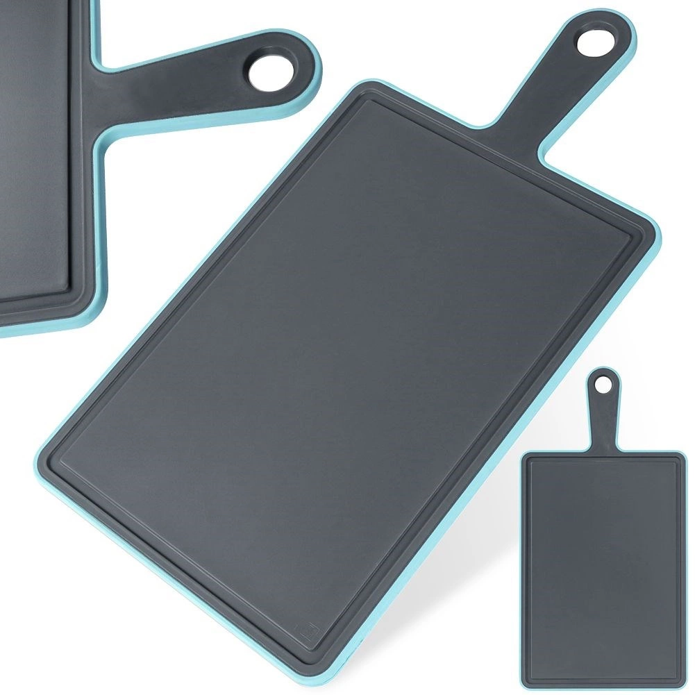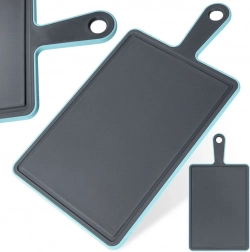 Praktické krájecí prkénko pro každodenní použití v kuchyni. Má obdélníkový tvar, protiskluzový okraj a pohodlné ucho pro přenášení i zavěšení. Šikovná odkapová drážka zachytí šťávy z potravin, takže pracovní deska zůstane čistá.