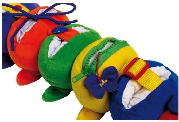Tato barevná textilní stonožka je navržena tak, aby děti motivovala k objevování a učení. Díky šesti různým uzávěrům si děti postupně osvojí praktické úkony, které využijí v každodenním životě. Příjemný plyšový povrch láká k mazlení a podněcuje smyslové vnímání.