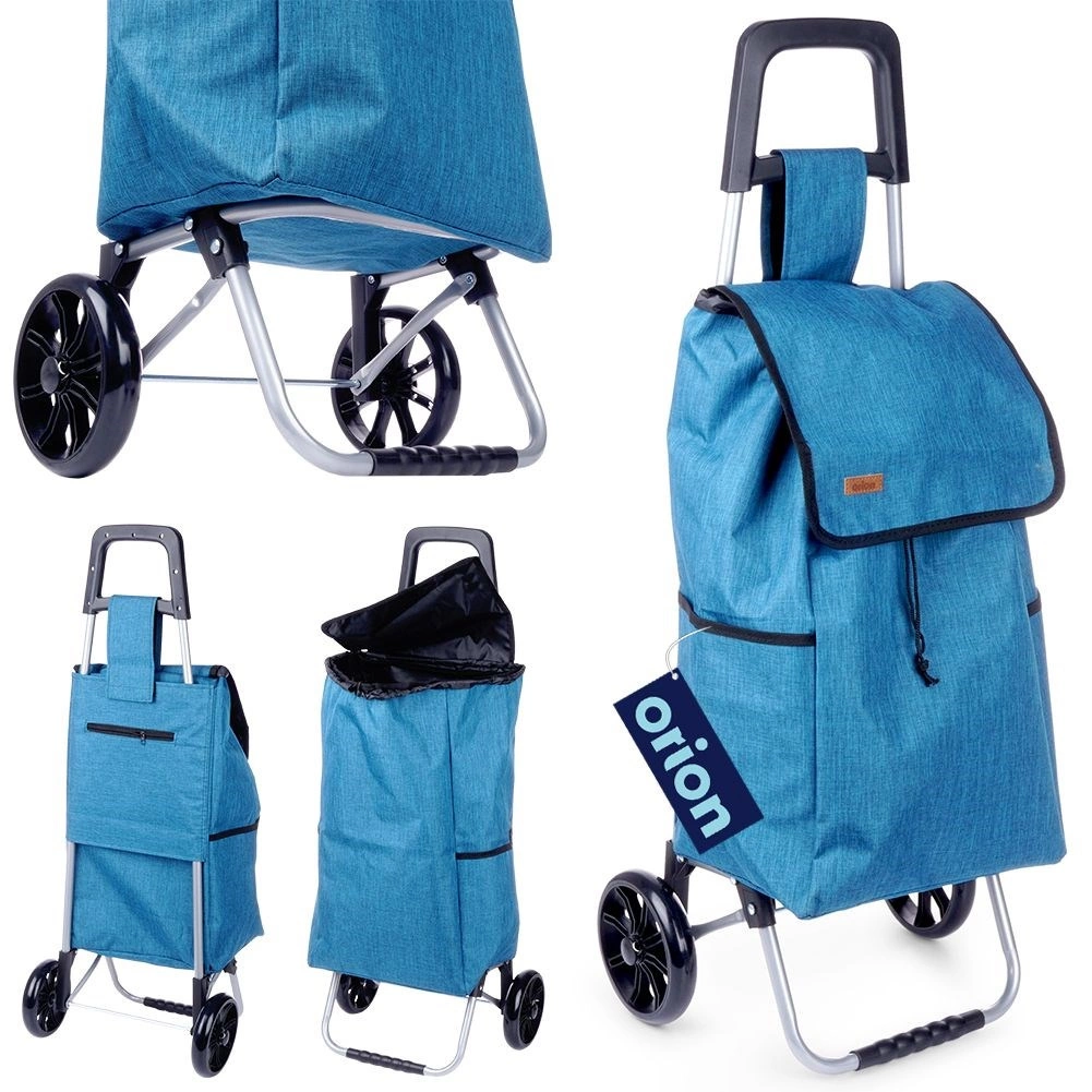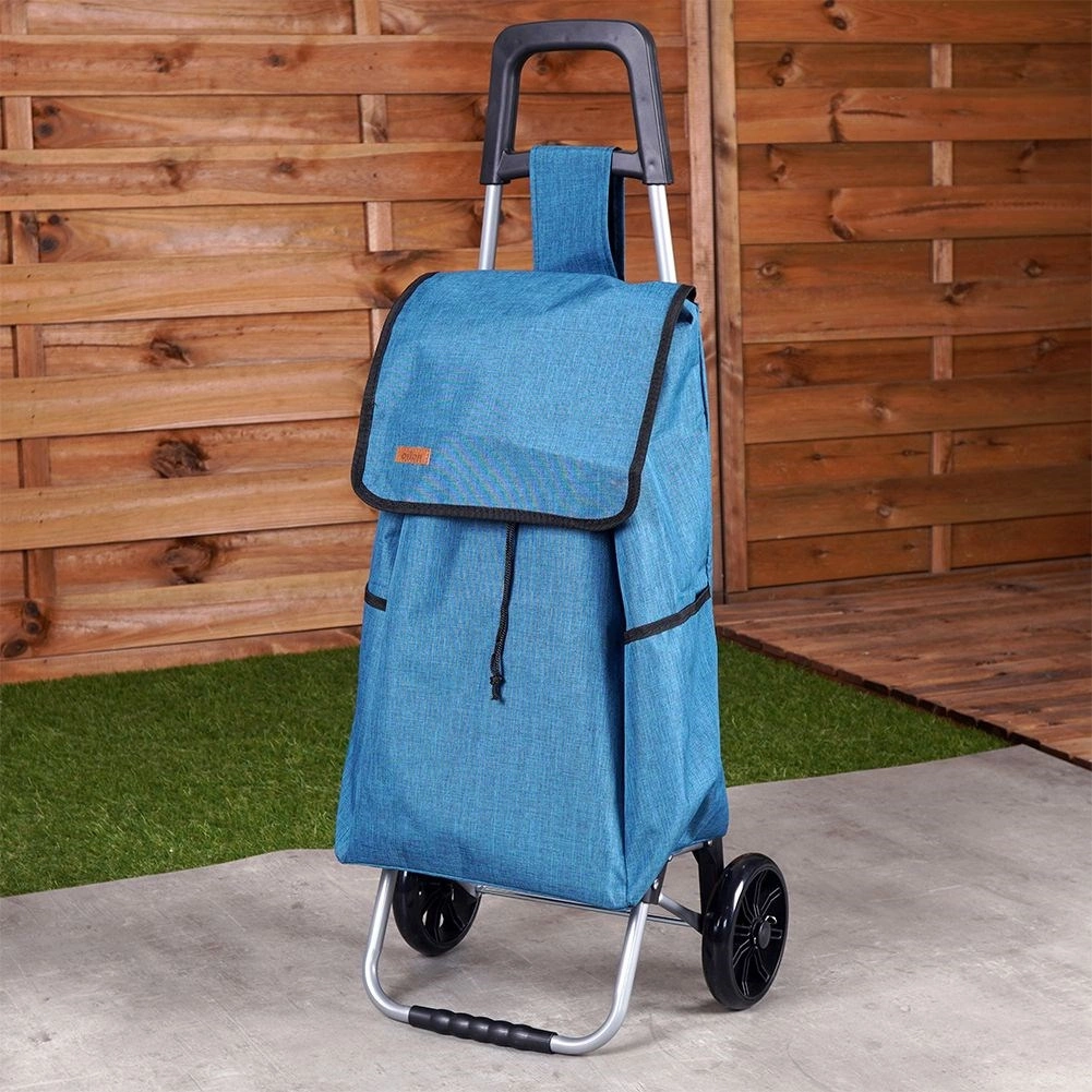 Praktický nákupní vozík s objemem 40 l usnadní každodenní nákupy i cesty. Díky stabilní konstrukci, nosnosti až 30 kg a velkým kolečkům pohodlně odvezete i těžší náklad. Prostorná textilní taška se stahovacím uzávěrem, zadní kapsou na zip a bočními kapsami zajistí pořádek a rychlý přístup k drobnostem.