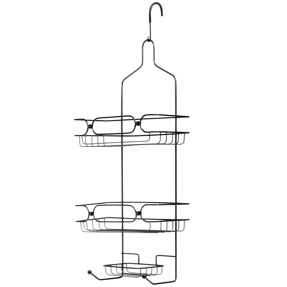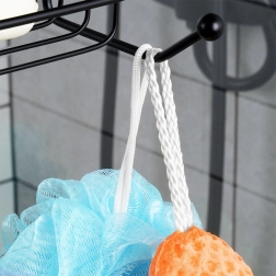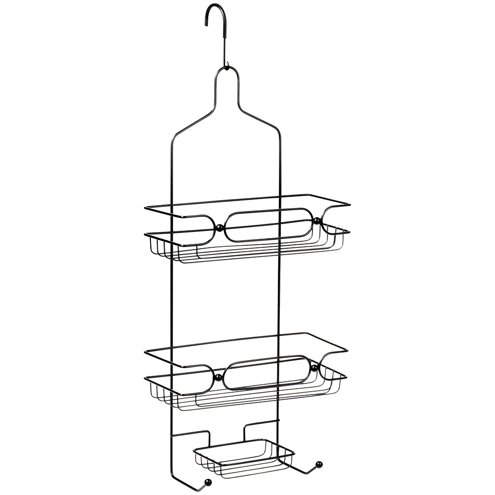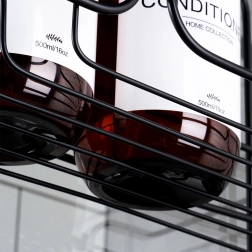 Kvalitní černě lakovaný kov je pevný a odolný proti korozi, takže polička spolehlivě vydrží každodenní používání. Gumový potah na závěsném háku chrání sklo a zabraňuje sklouzávání. Dvě velké police pojmou šampony a gely, spodní mýdlenka a dvojice háčků jsou ideální pro houby, žiletky či kartáče.