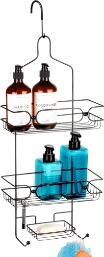Tato závěsná polička do sprchy je navržena pro maximální pohodlí a pořádek. Díky univerzálnímu závěsu ji snadno umístíte na sprchovou hlavici, skleněnou zástěnu nebo běžný háček – bez nutnosti vrtání. Otevřená drátěná konstrukce podporuje rychlé odtékání vody a hygienické vysychání.