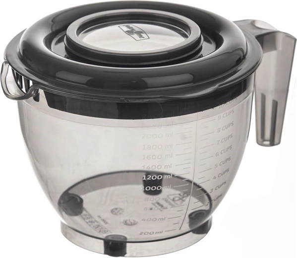 Praktická mísa o objemu 2,5 l pro pohodlné míchání, šlehání a nalévání. Má dvoudílné víko proti stříkání, pohodlné ucho, precizní výlevku a integrovanou odměrku v ml i šálcích. Vyrobena z odolného, zdravotně nezávadného plastu bez BPA, vhodná do myčky a mikrovlnky (bez víka), se stabilními protiskluzovými nožkami.