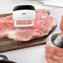Husté pole ostrých nerezových jehel proniká hluboko do masa, změkčuje vlákna a zajišťuje rychlejší a rovnoměrnější přípravu.